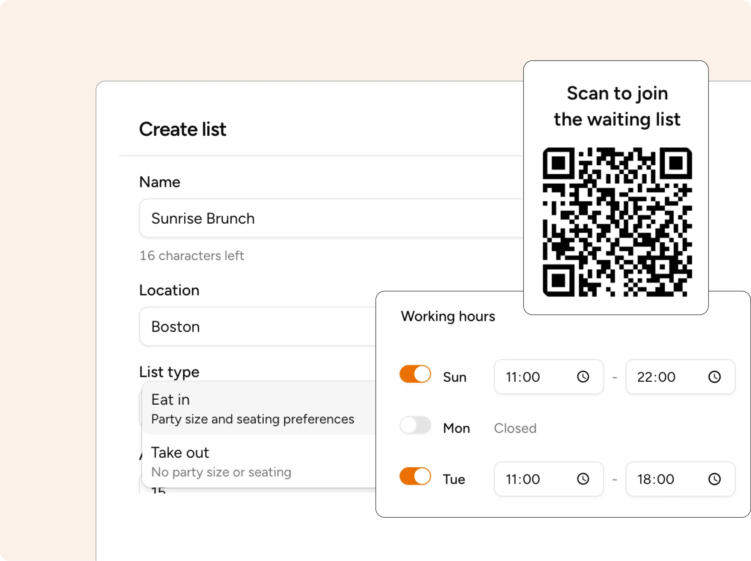 - Website and social media links. Embed a waitlist link on your site or social profiles. Guests can join before they even arrive, which smooths out the rush at the door and gives you a heads-up on incoming demand.